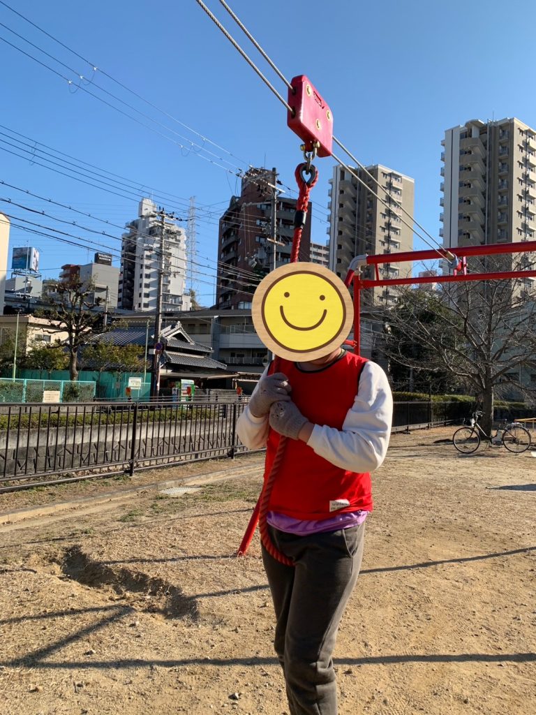 公園では元気に走ったりブランコ、滑り台、ターザンロープをしました。